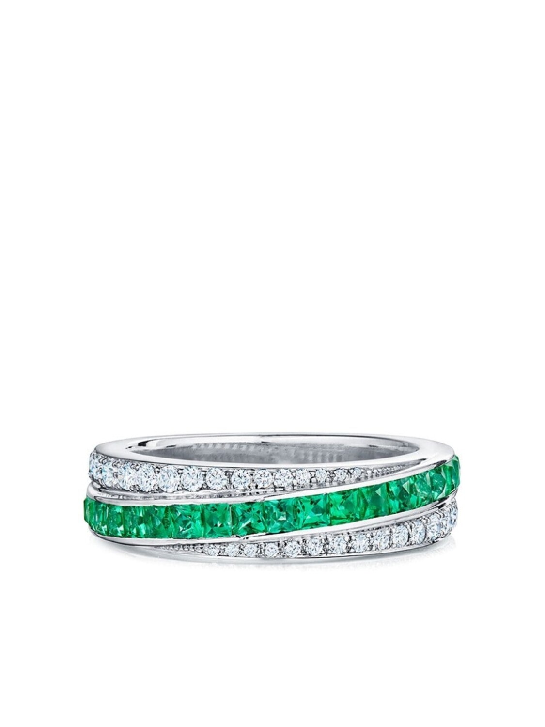 Кольцо Splendor из белого золота с бриллиантами и изумрудами KWIAT, серебряный