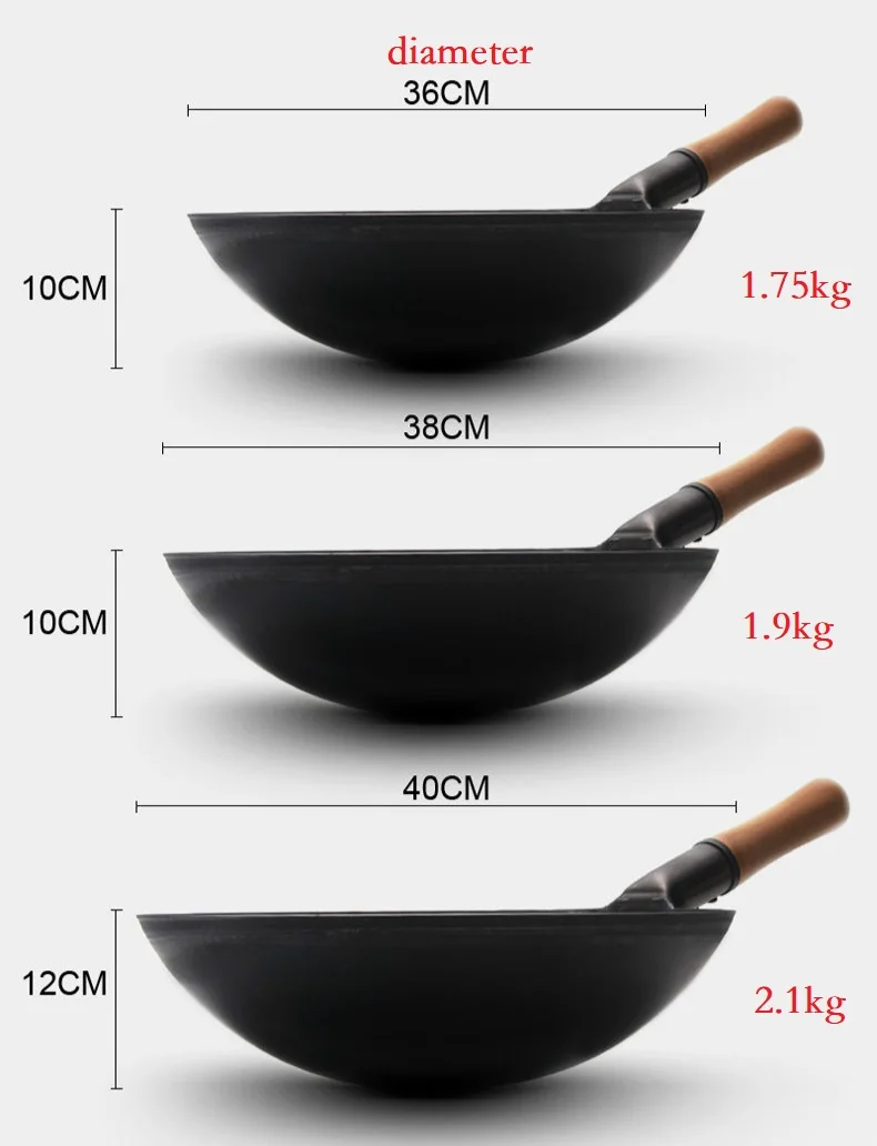 Коммерческая очень большая железная кастрюля 36/38/40 см, вок шеф-повара отеля, старомодная неприлипающая железная сковорода без покрытия