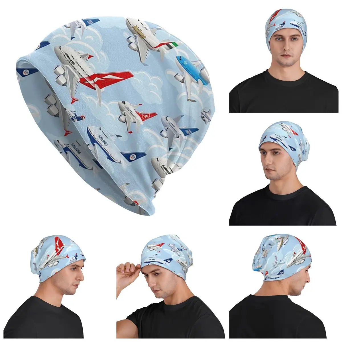 Коммерческие самолеты с героями мультфильмов, бесшовный узор, теплая вязаная шапка, модная шапка-капот, осенне-зимние уличные шапки для взрослых