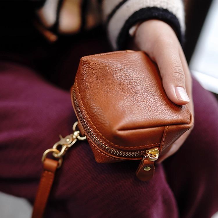 Компактная мини-сумочка из коровьей кожи: Наушники, Губная помада, Кошелек для монет и карт коричневый