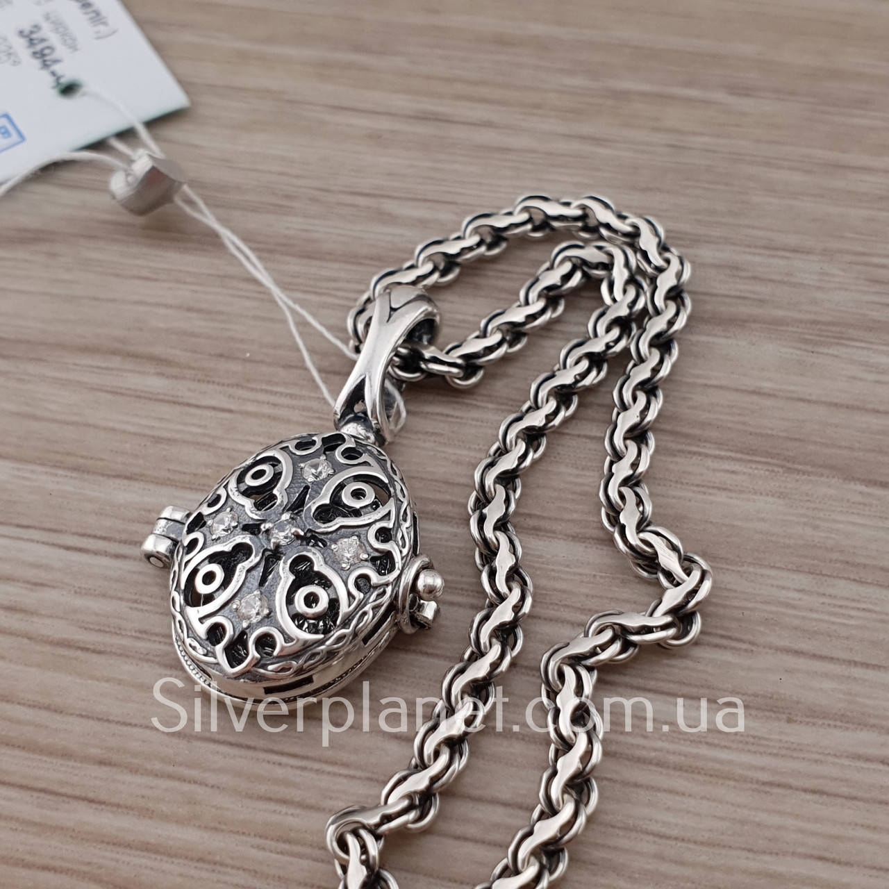 Комплект! Серебряная цепочка и ладанка женская открывающаяся. Кулон мощевик на цепи серебро
