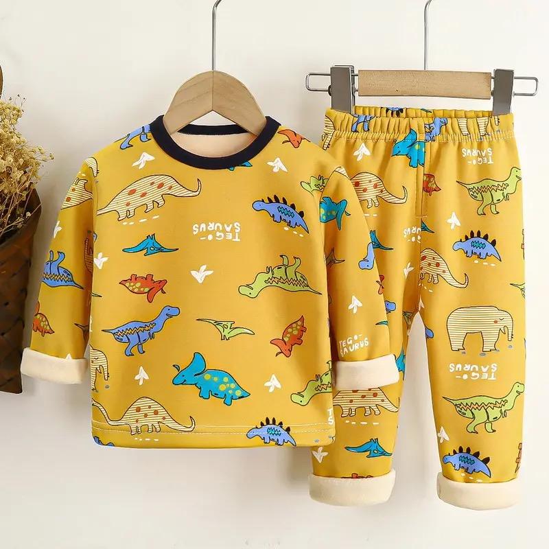 Комплекты детского нижнего белья с подкладкой, осенняя и зимняя одежда с длинными рукавами и брюки, теплая домашняя одежда для мальчиков и девочек 120