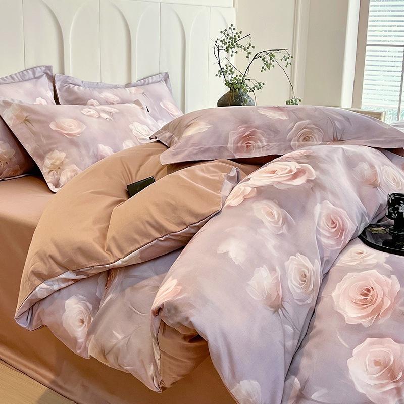 Комплекты постельного белья из сатина из длинноволокнистого хлопка 60S с цифровой печатью, комплект пододеяльника, приятное к коже, ультрамягкое постельное белье для всех сезонов 1.5-1.8m 4pcs set