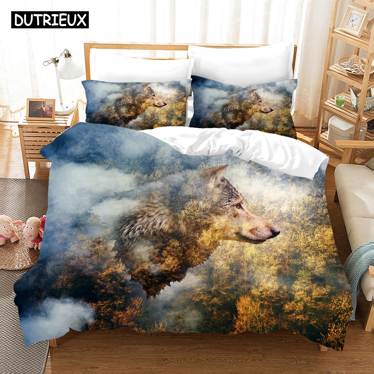 Комплекты постельного белья с изображением 3D волка, пододеяльник с наволочкой, двуспальная кровать, двуспальная кровать, постельное белье EU single(135x200cm)