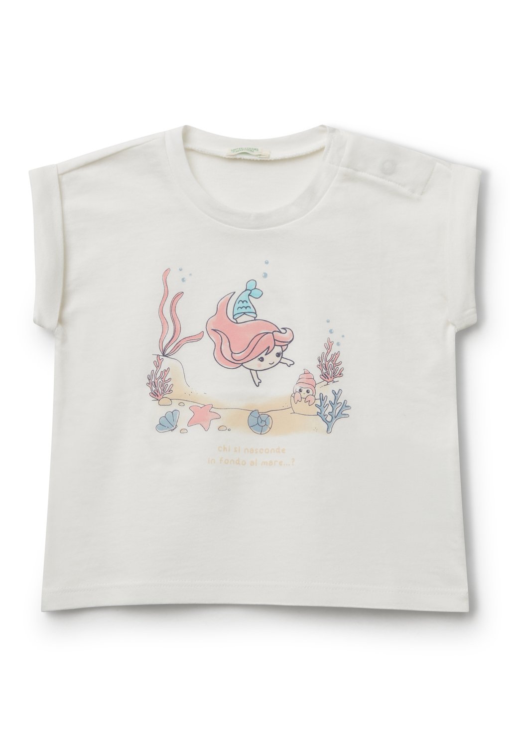Футболка с принтом SHORT SLEEVE WITH PRINT United Colors of Benetton, белый