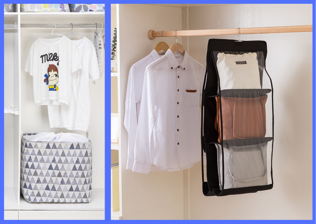 Комплект полезных органайзеров для шкафа: органайзер-мешок на 100 л и органайзер для хранения сумок.