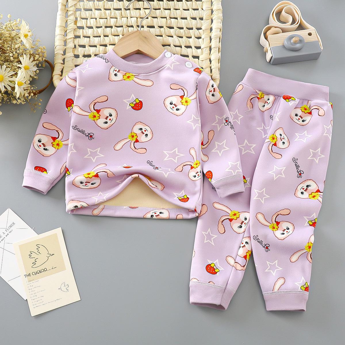 Комплект детского термобелья: Мягкая, утепленная пижама из двух частей для мальчиков и девочек 73CM фиолетовый