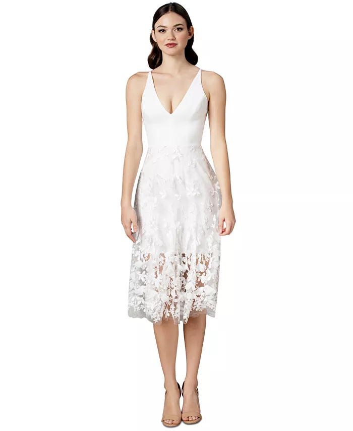 Платье с глубоким вырезом Darleen, силуэт "приталенный-клеш" Dress the Population, белый