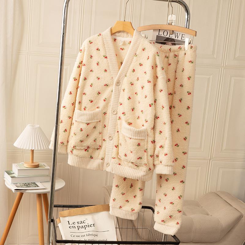 Комплект из длинных брюк, 2 шт., теплая фланелевая пижама, домашний костюм, осенне-зимняя домашняя одежда с карманами, женская одежда для сна с милым принтом XL