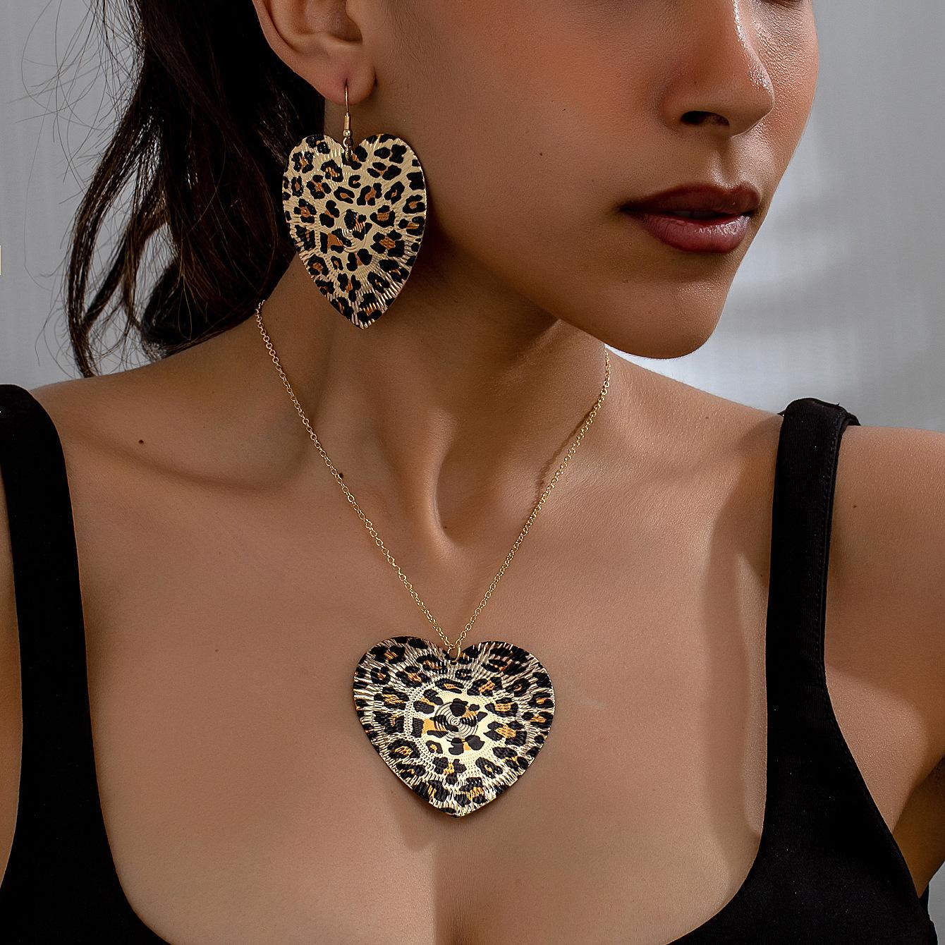 Комплект из ожерелья и серег с большим сердцем и леопардовым принтом на водной ряби