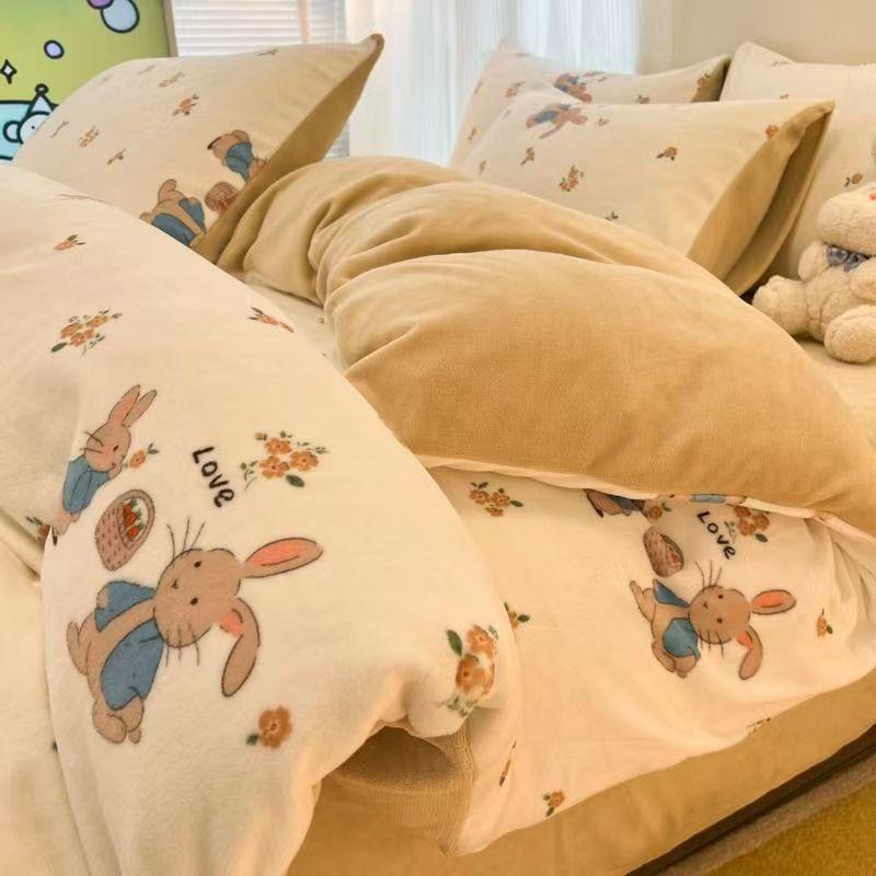 Комплект из четырех предметов из молочного флиса, постельное белье из утолщенного флиса, простыня с антистатическим покрытием 1.5m bed