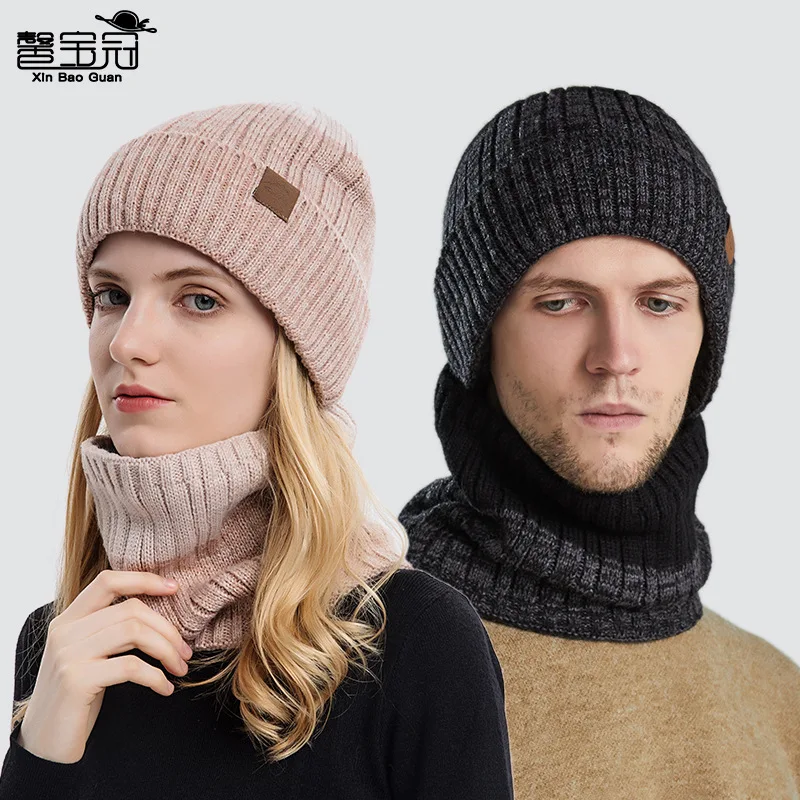 Комплект из шапки и шарфа, зимняя мужская модель, женская уличная плюшевая теплая ветрозащитная шапка для лыжного спорта и велоспорта, Женс...