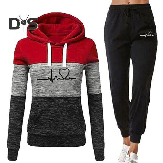 Комплект из 2 предметов: брюки с капюшоном, осенне-зимний комплект, цветные накладные карманы, завязка на резинке, пояс на щиколотке, женский спортивный костюм 3XL красный