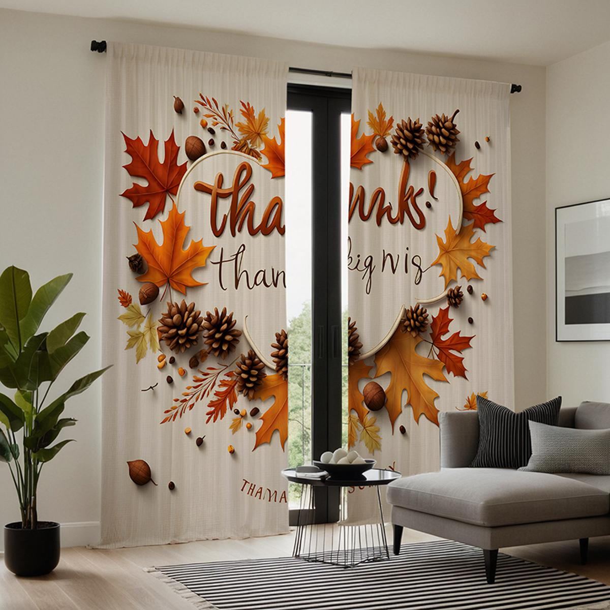 Комплект из 2 предметов, декоративная занавеска в виде шишки на День благодарения с кленовым листом, белая занавеска с цифровой печатью, украшение для дома в стиле деко W52H63inchW132H160cm