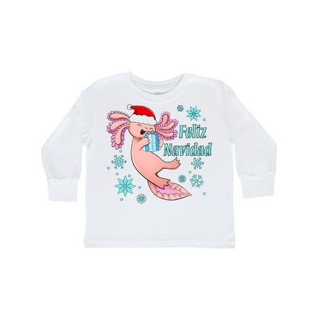 Inktastic Feliz Navidad Cute Axolotl in Santa Hat with Snowflakes Gift Toddler Boy or Toddler Girl Long Sleeve T-Shirt