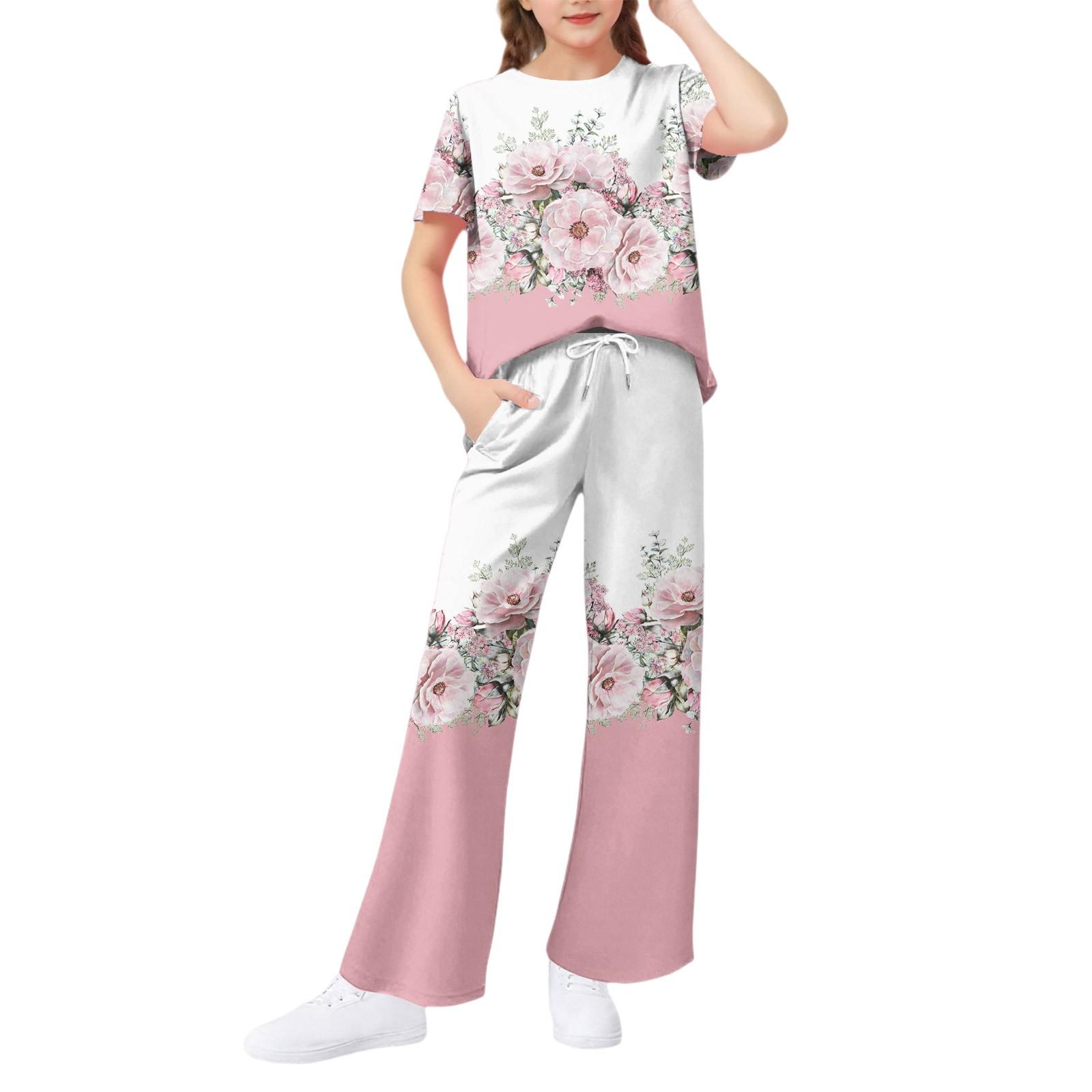 Комплект из 2 предметов для девочек - футболка с коротким рукавом и брюки широкого кроя 150 розовый