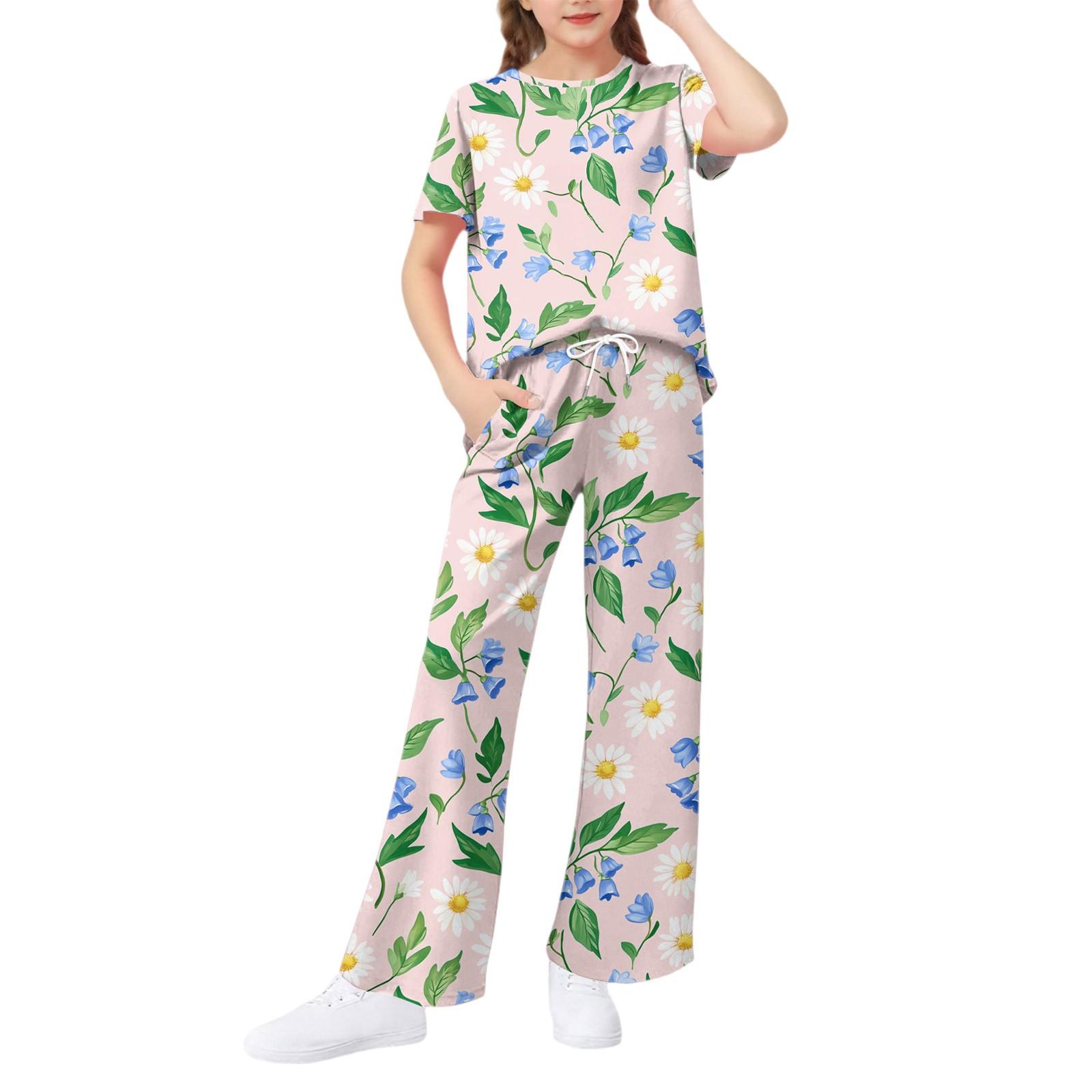 Комплект из 2 предметов для девочек - футболка с коротким рукавом и брюки широкого кроя 160
