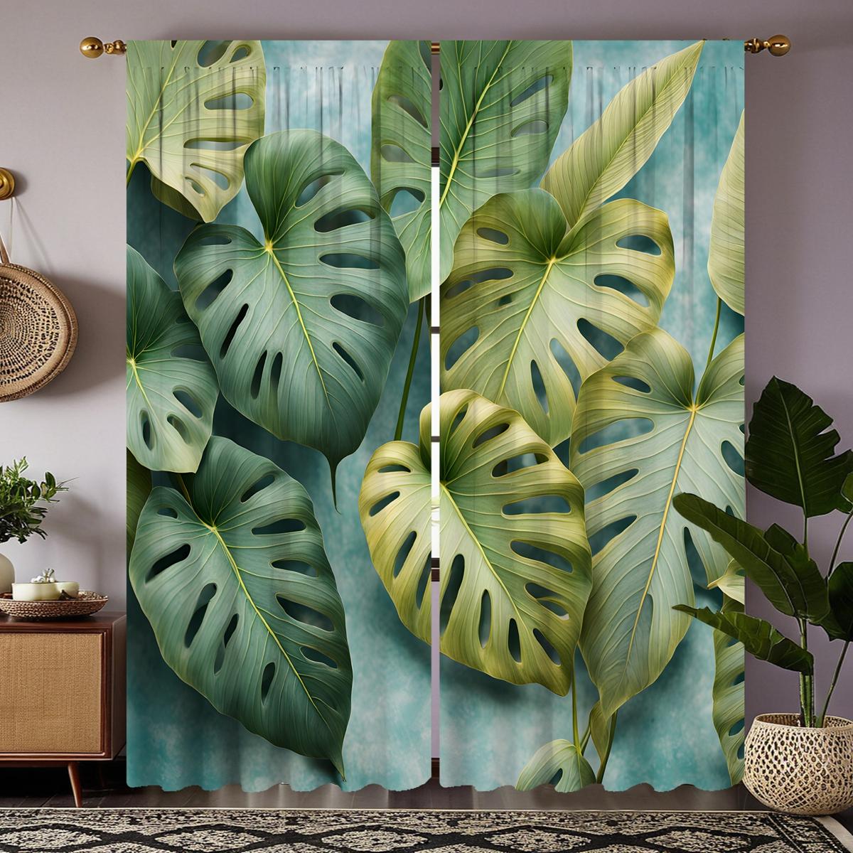 Комплект из 2 предметов HD Юго-Восточная Азия банановый лист декоративная занавеска зеленая завязка цифровая печать занавеска украшение дома стиль Украшенный l W52H63inchW132H160cm
