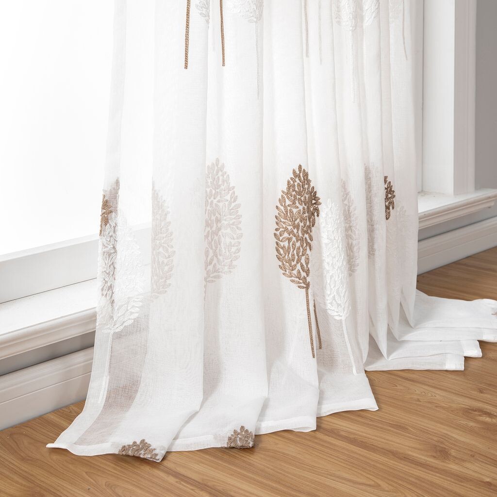 Комплект из 2 штор с полупрозрачными люверсами, тюль с вышивкой, имитация льна, Ш140хВ145см, гостиная, спальня, ресторан, серо-белые листья easy home