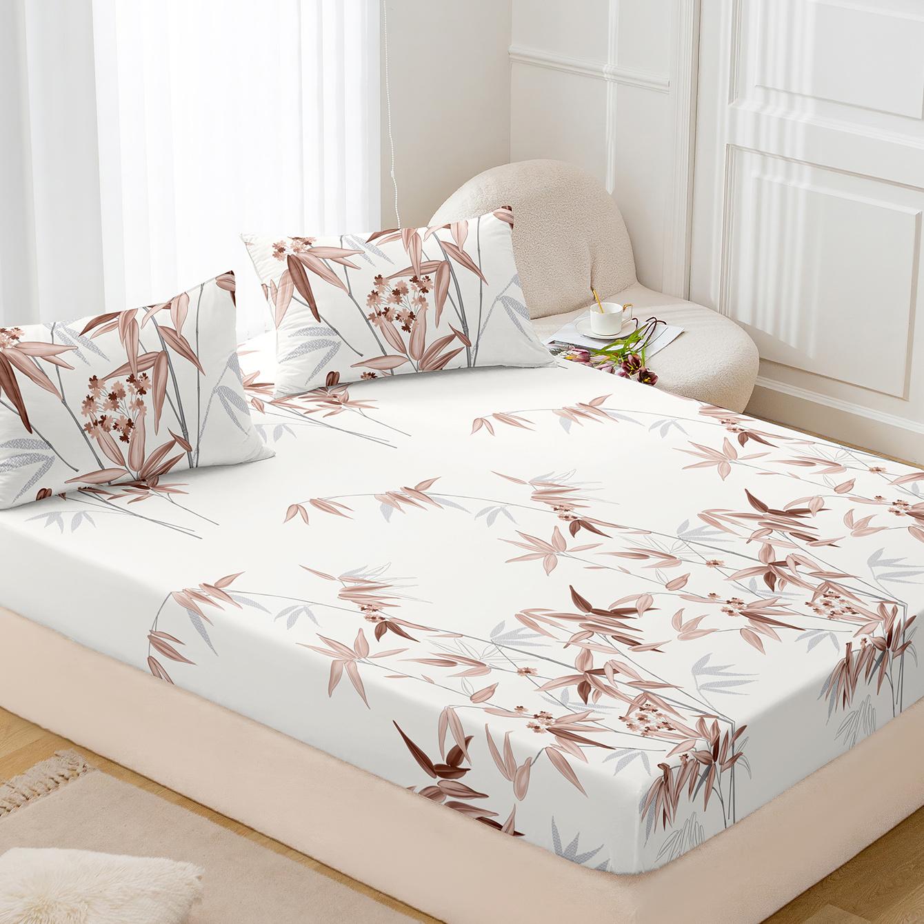 Комплект из 3 мягких и дышащих простыней на резинке с растительным принтом - Роскошное постельное белье для комфортного сна в комплекте простыней 90x200cmx25