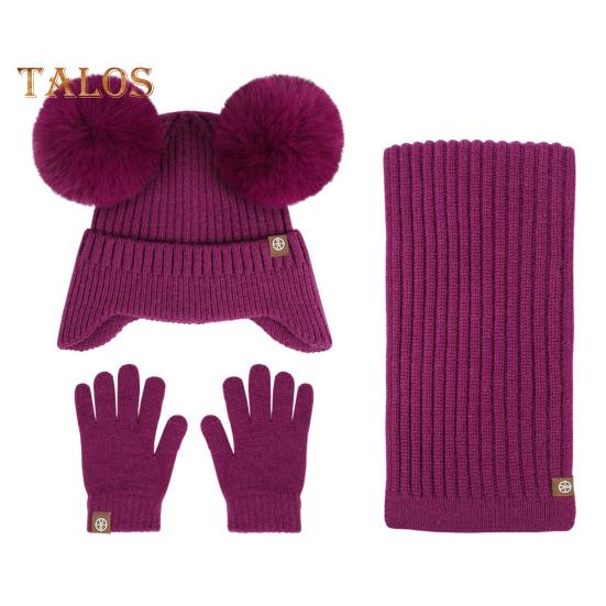 Комплект из 3 предметов: детская зимняя шапка, шарф, перчатки, толстая трикотажная защитная шапка для ушей, перчатки, эластичная ветрозащитная зимняя шапка-купол для езды на велосипеде, шапка-бини с воротником фиолетовый