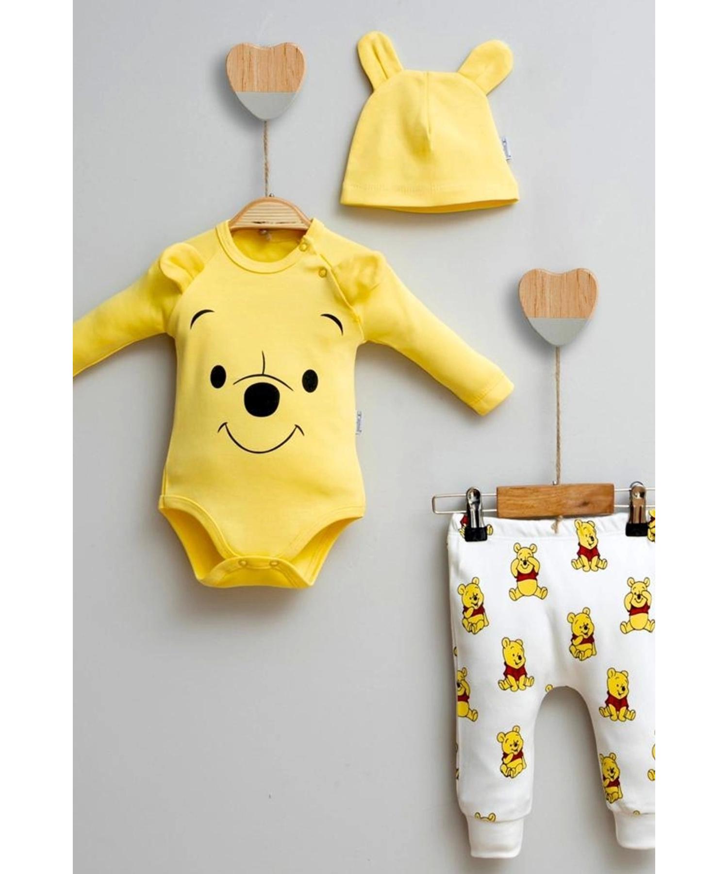 Комплект из 3 предметов для мальчика из 100 % хлопка с шапкой с медвежьим рисунком. Изделие произведено в Турции из приятной для кожи ткани.