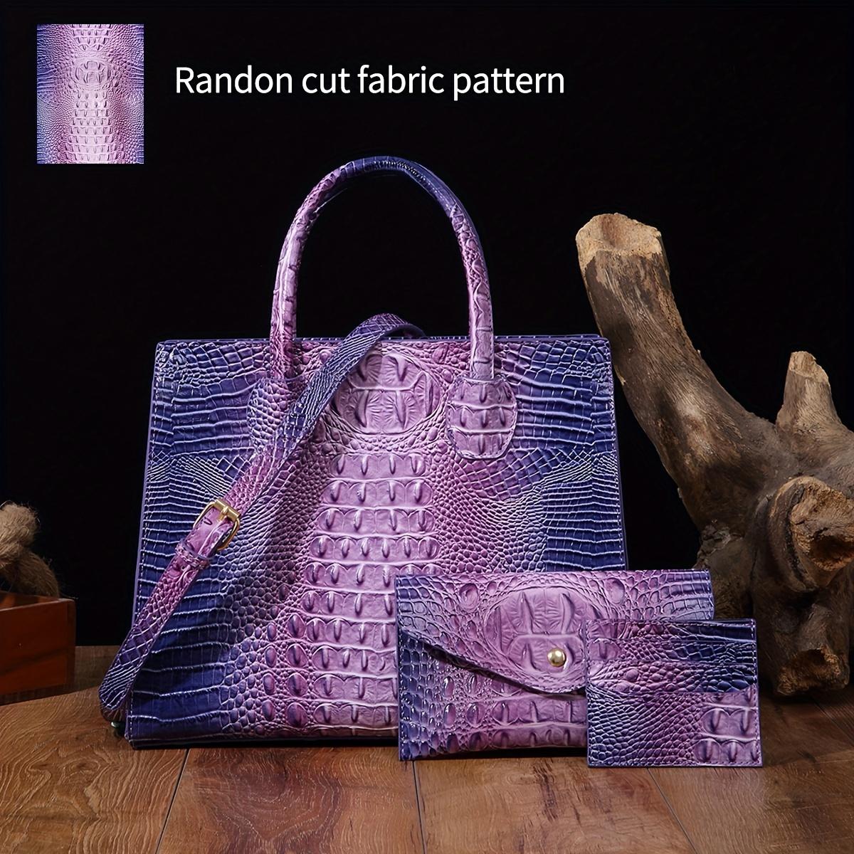 Комплект из 3 сумок и кошельков с крокодиловым узором, многофункциональная винтажная сумка через плечо с верхней ручкой, деловая сумка-клатч и кошелек для карточек и монет