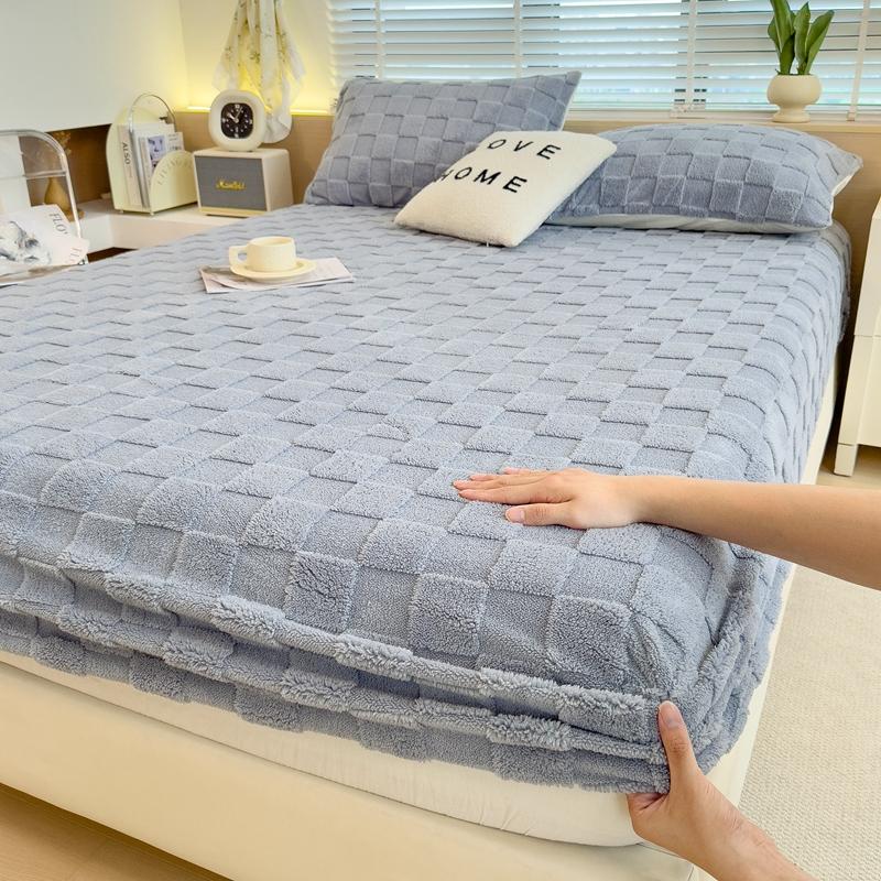 Комплект из 3 шт./комплект из цельного бархата, простыни на резинке, 1 шт., чехол для матраса, 2 шт., наволочка, мягкий эластичный чехол для матраса, теплое постельное белье 90x190x30cm