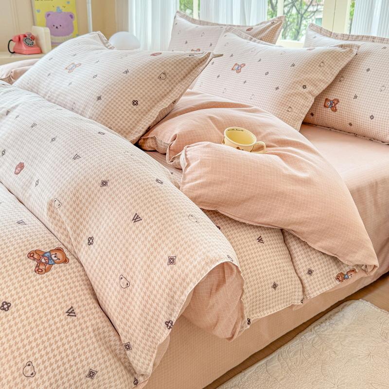 Комплект из 4 предметов из хлопка, утолщенный, начесанный, свежий, хлопковый, простыня, пододеяльник, шапки, модели, комплект из 3 предметов для общежития 1.2m