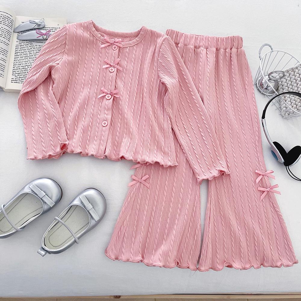 Комплект кардигана с бантом и расклешенных брюк для девочек в корейском стиле - Коллекция весна/осень 2025 110 cm