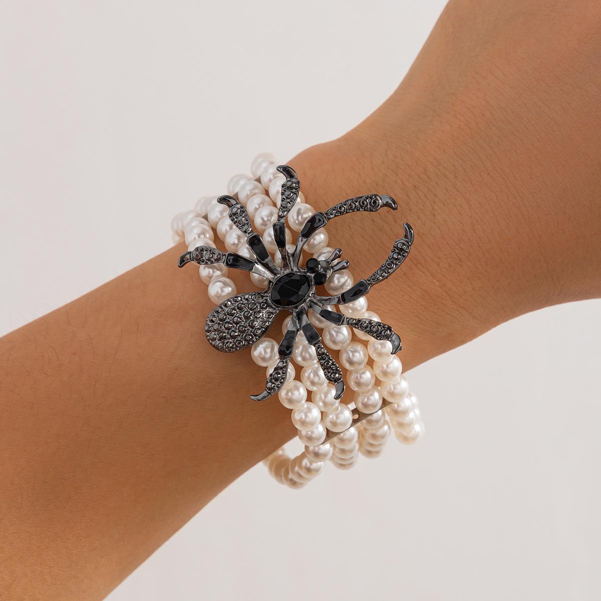 Комплект колье с готической паучьей жемчужиной: Многослойная цепочка на ключицу из бисера в темном стиле