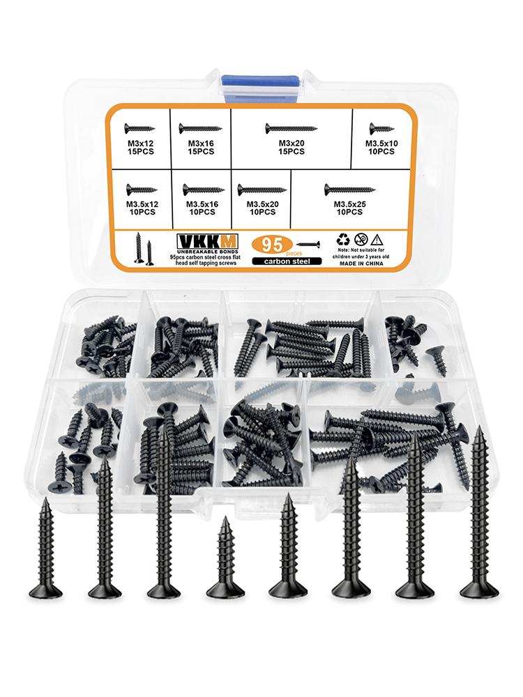 Комплект крепежных деталей для шурупов по дереву с потайной головкой и крестообразным шлицем от M3 до M3.5, шурупы с потайной головкой и крестообразным шлицем из углеродистой стали - 95 шт.