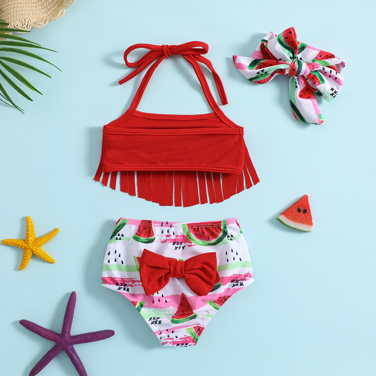 Комплект купальника бикини с бантиком из 3 предметов для девочек, для младенцев и малышей 110 красный
