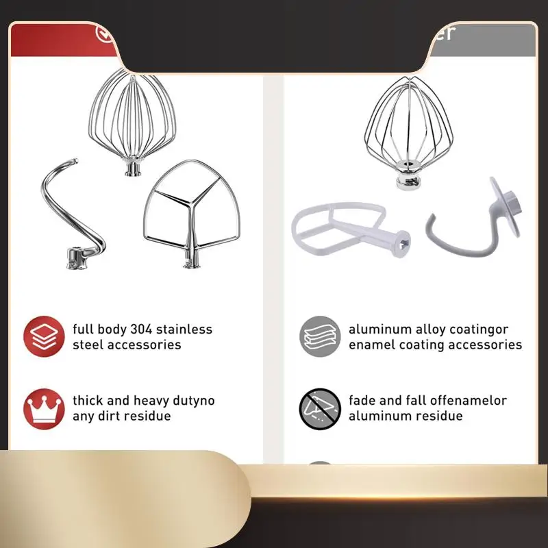 Комплект насадок для миксера (плоская взбивалка, крючок для теста, проволочная насадка для збивания) для подъемного миксера Kitchenaid и чаши на 7 литров-N36R