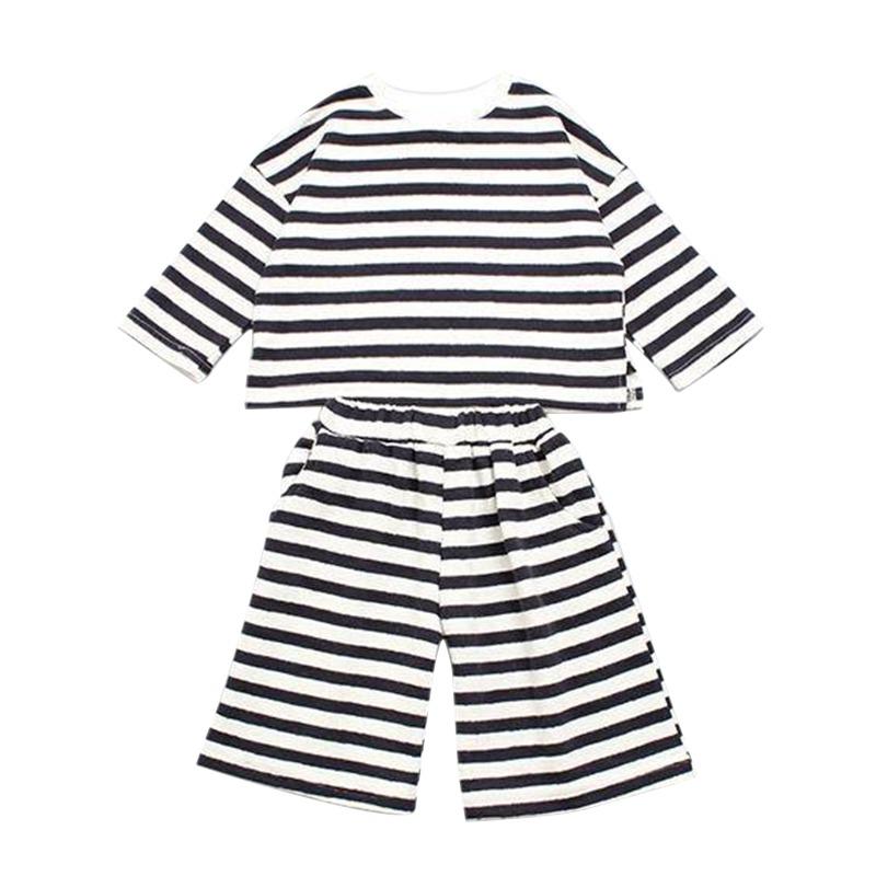 Комплект одежды в корейском стиле для маленьких мальчиков и девочек, простой свободный комплект одежды в спортивном стиле в полоску с принтом