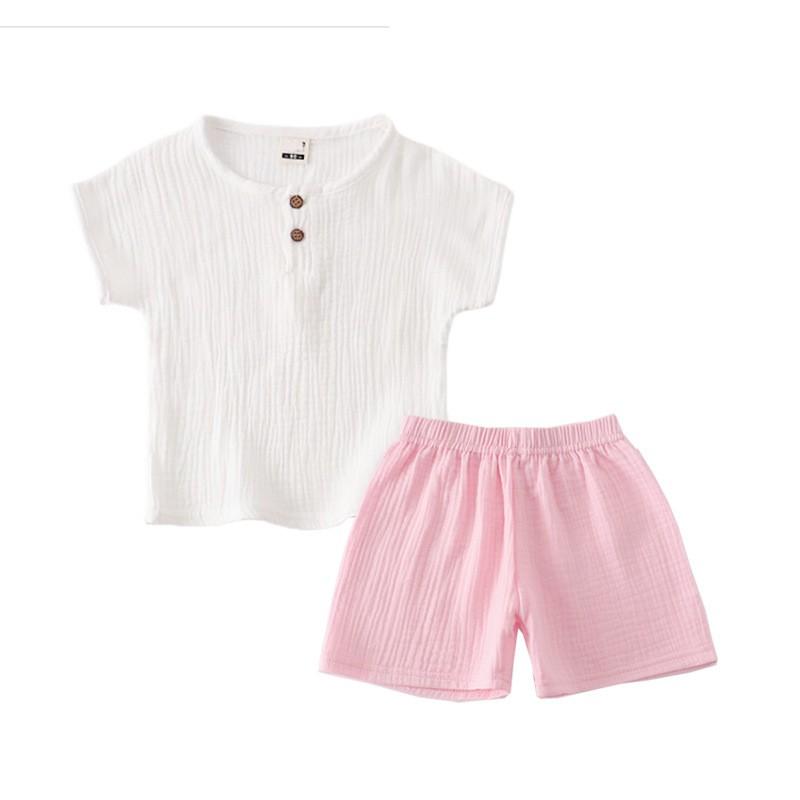 Комплект одежды из футболки с короткими рукавами с героями мультфильмов и шорт для маленьких мальчиков и девочек + шорты 100 розовый