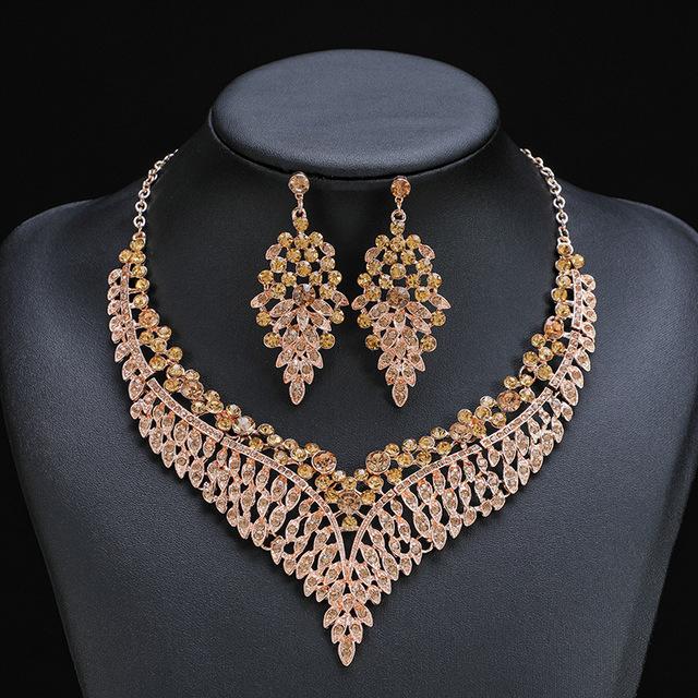 Комплект ожерелья и серег из бриллиантового материала в дворцовом стиле с цветными кристаллами и драгоценными камнями, цепочка для ключицы, ювелирные изделия для банкета, бала 47cm коричневый