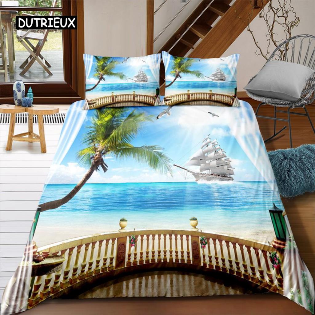 Комплект пододеяльника с пейзажем, 3D-принт Фальшивое окно , Пейзажный постельный комплект из микрофибры, Пейзаж, Водопад, Сад, Пододеяльник размера кинг-сайз EU single(135x200cm)