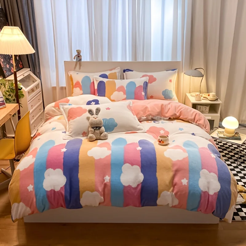 Комплект пододеяльников из молочного флиса (1 пододеяльник + 2 наволочки), мягкое и теплое постельное белье с принтом, можно стирать в стиральной машине, 3 шт.