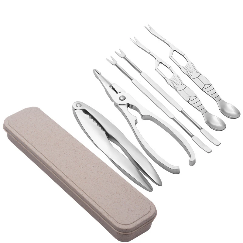 Portable Prawn Peeler Seafood Tool Stainless Steel Crab Peel Shrimp Tool Lobster Clamp Pliers Clip Pick Set Kitchen Accessories