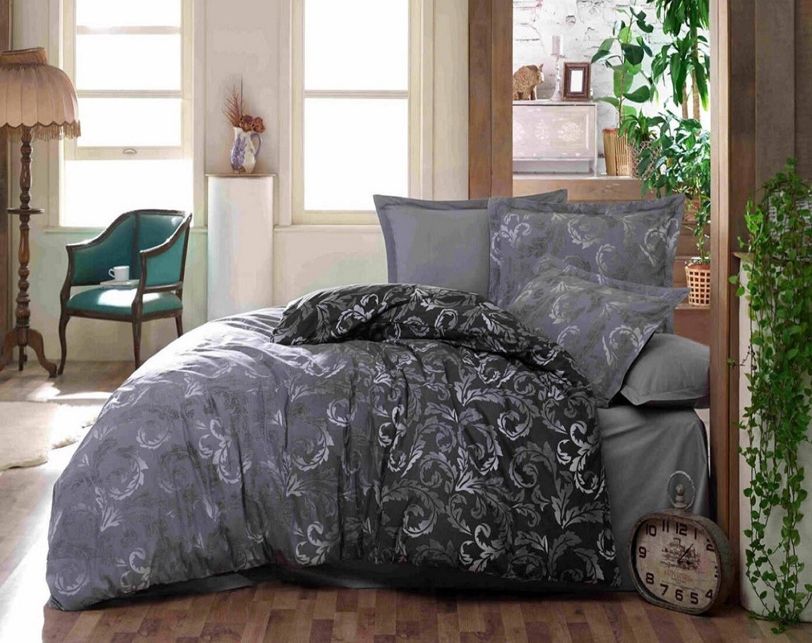 Комплект постельного белья Вензель с росписью Графит CottonTwill 220х250 см Семейный Бязь Calico Турция (БС015-5)