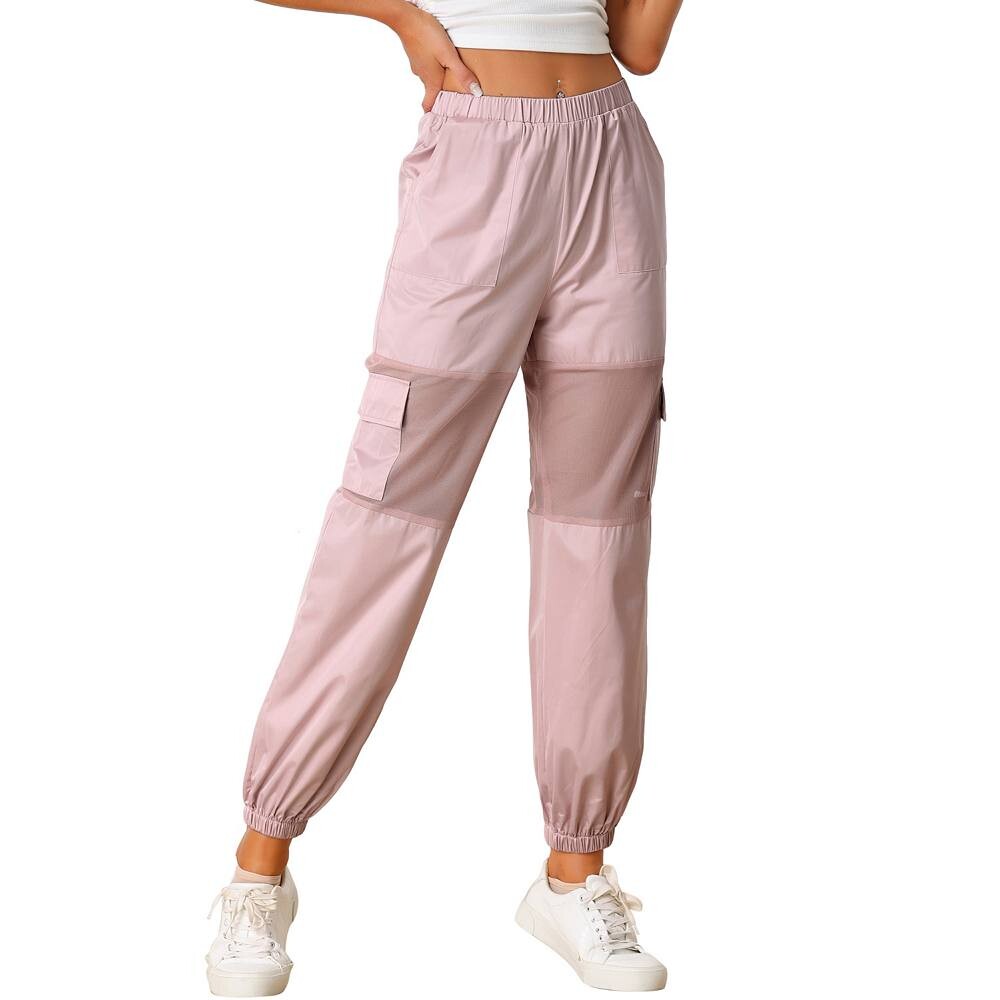 Брюки с сетчатыми вставками для женщин, прозрачные спортивные эластичные мешковатые брюки-карго с высокой талией ALLEGRA K, розовый