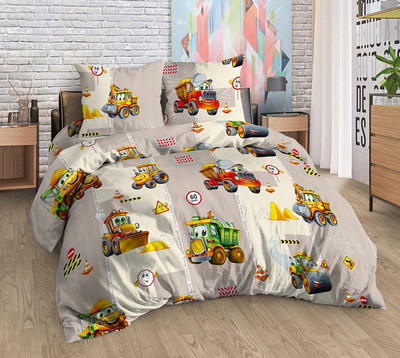 Комплект постельного белья, Грузовичок Бязь 1.5сп подростковый с 1 наволочкой 70x70