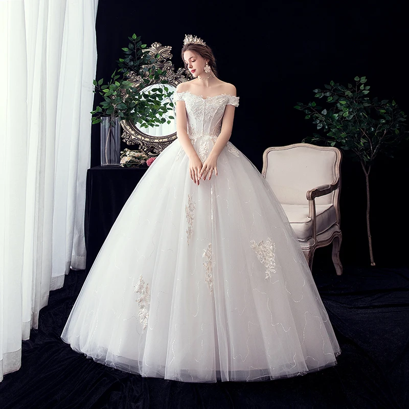 New Arrive Boat neck Ivory Simple embroidery applique Off the shoulder Princess Gowns Lace Wedding Dresses vestido De Noiva