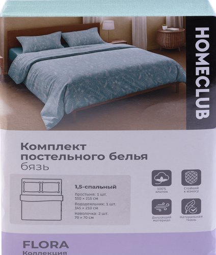 Комплект постельного белья размера евро HOME CLUB Flora выполнен из бязи – полностью натуральной хлопковой ткани. Бязь гигроскопична, не электризуется и пропускает воздух. Натуральный состав делает ткань дышащей и создает приятные условия для комфортного сна. Постельное белье не линяет и сохраняет свой цвет даже после многочисленных стирок.