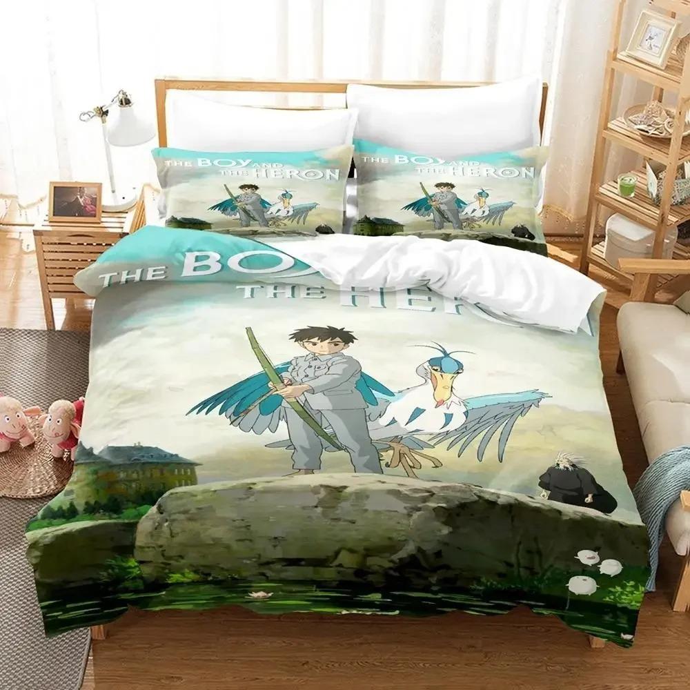 Комплект постельного белья «Мальчик и цапля» односпальный двуспальный двуспальный комплект постельного белья размера «king-size» для взрослых и детей, комплект пододеяльников, комплект простыней в стиле аниме 70x133cm 2pcs