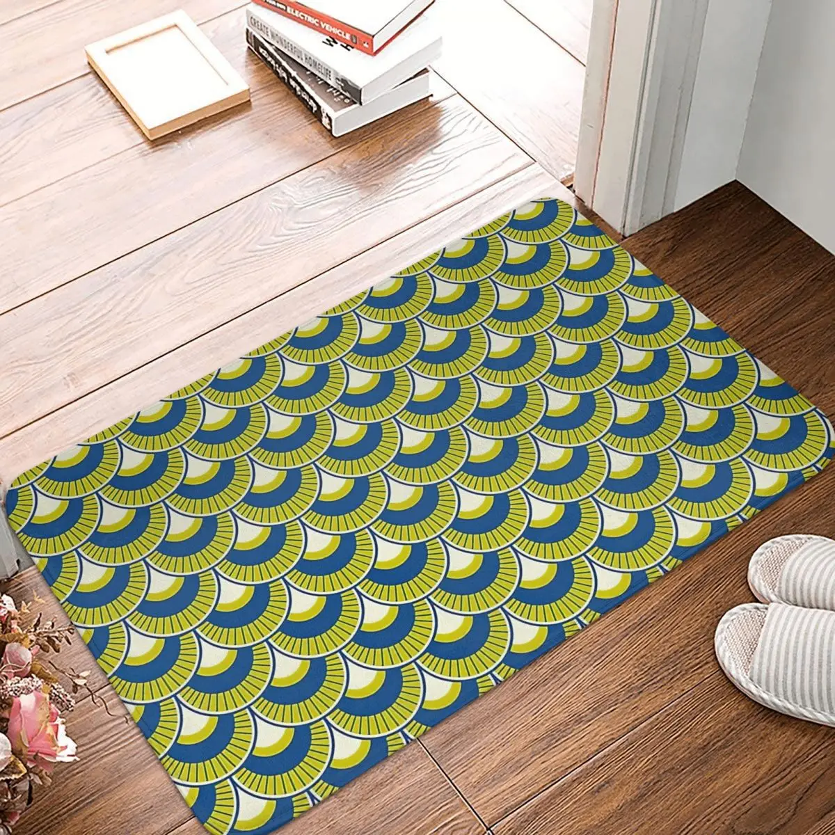 carpets geometric triangles pattern in mustard, grey and blue doormat rug carpet mat footpad anti-slip corridor kitchen bedroom balcony