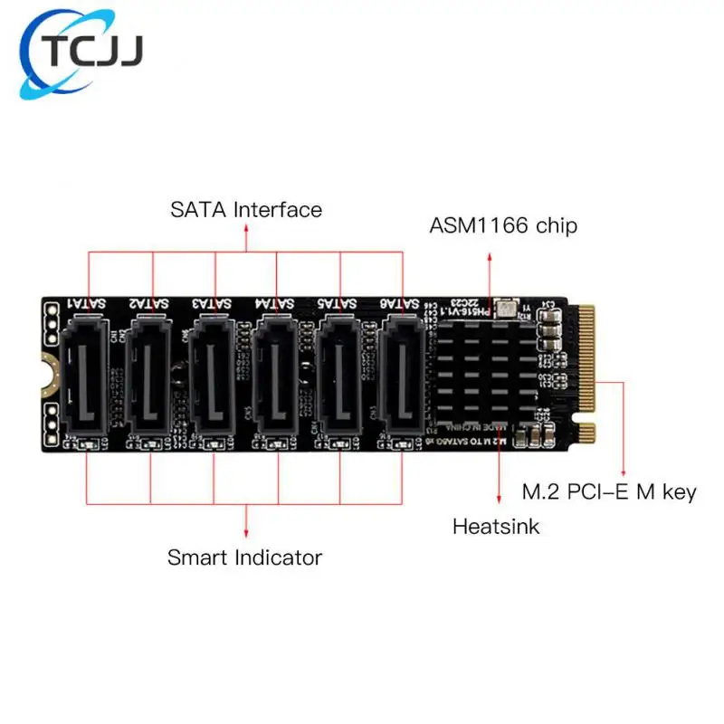 Высокоскоростной адаптер расширения Sata3.0 6g, высокоскоростной адаптер расширения M.2 M-key Pci-e3.0 To 6-port для майнинга Btc