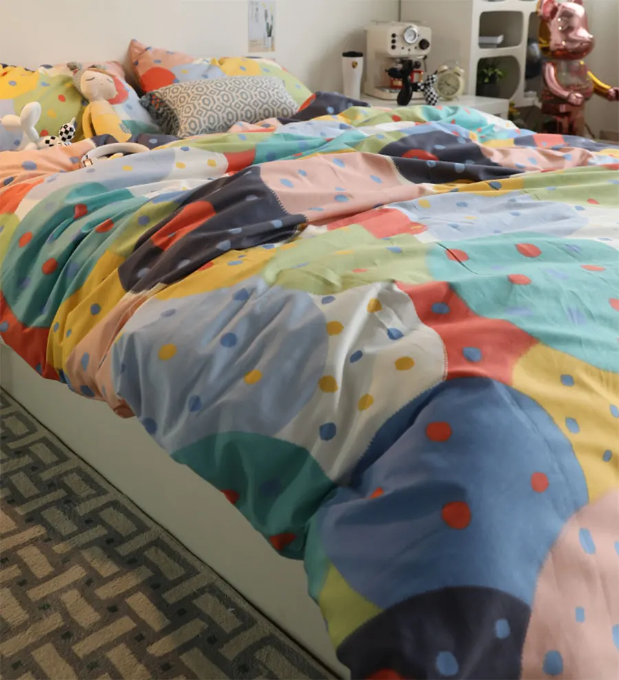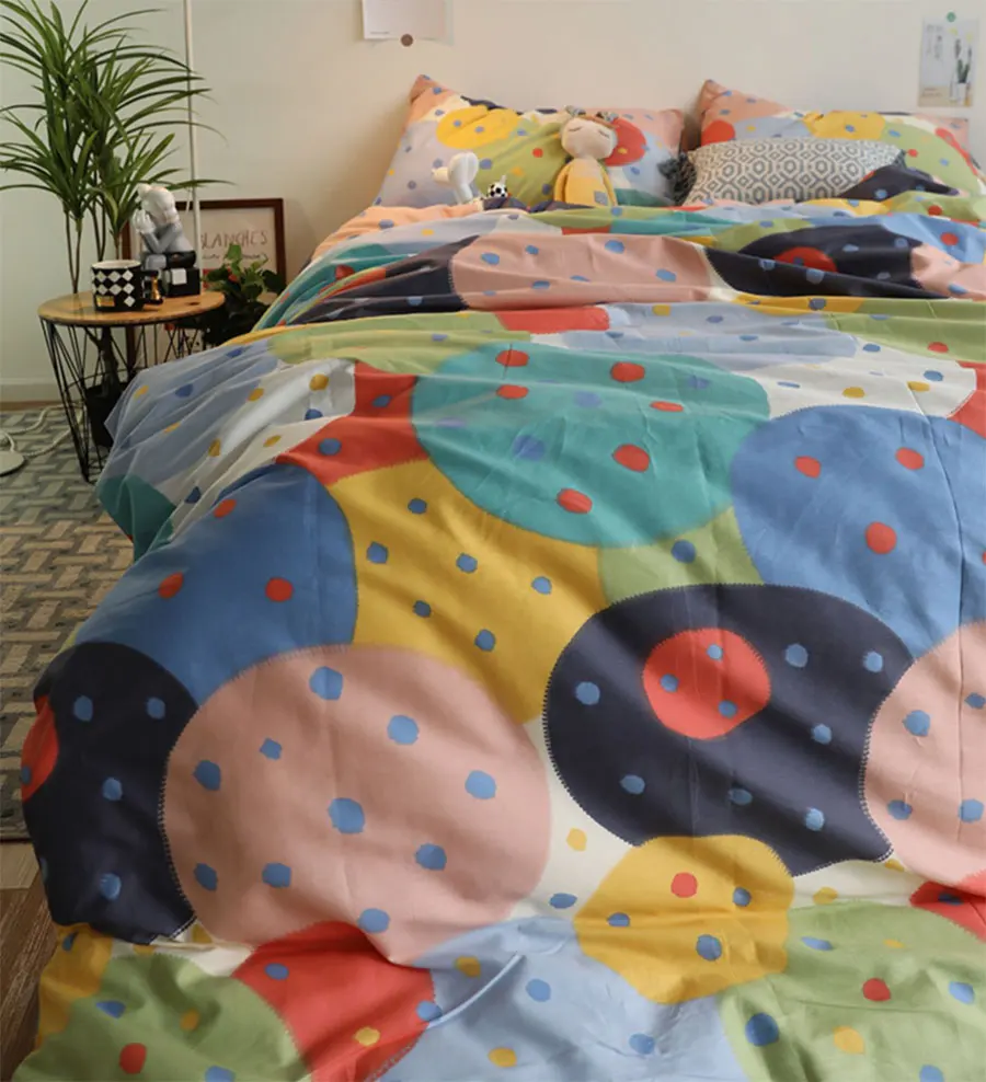 Комплект постельного белья в горошек для детей и подростков, милый мультяшный хлопковый односпальный полноразмерный Королевский домашний текстиль, простыня, наволочка, пододеяльник