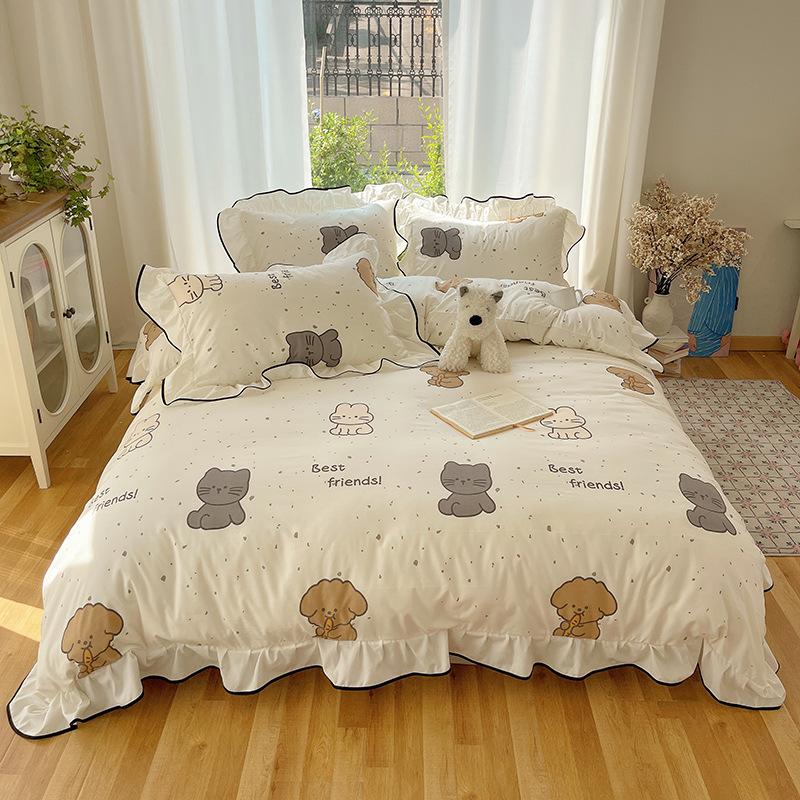 Комплект постельного белья в стиле «девочка» с принтом, кружевом, из стиранного хлопка, контрастные корейские комплекты одеял, не скатывающееся постельное белье для лета 0.9-1.2m 3pcs set